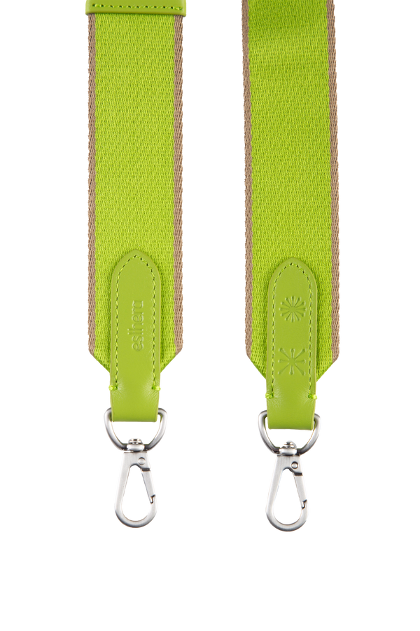 A soft, substantial webbing shoulder strap finished with leather end tabs. Comfortable for all-day wear and an easy way to personalize select Esthera bags. Clip it on and wear it on the shoulder or crossbody—built for everyday pace.